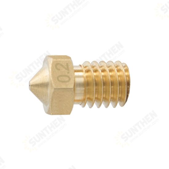 Compatiable:1.75mm Filament Material:Brass Hole Size:0.2/0.3/0.4/0.6/0.8/1.0mm Weight::2g Printing Materials:PLA, Flexible Rubber, Wood, TPU Screw Thread:M6 Hexagon Diameter:6mm Print Speed: 20-150mm/s
