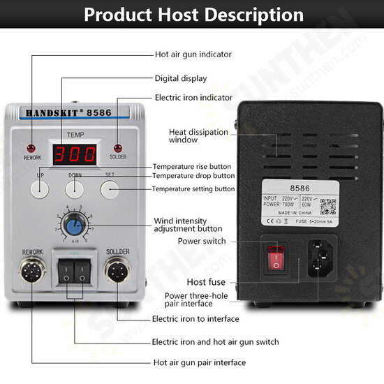 4. PID technology to enhance temperature stability; Adjust the airflow and temperature control rotation easily;