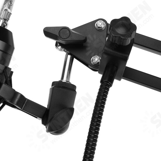 Equipped with BM-800 microphone, Shock mount, Filter, Mic adjustable suspension scissor arm stand, Anti-wind foam Cap, Power cable, Sound card.