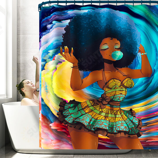 African American Black Women Waterproof Shower Curtain Set with Rugs Non-Slip Bathroom Mat Toilet Rug Bath Mat Set