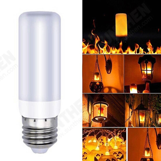 Flickering mode, Gradual-change mode, General lighting,Gravity Mode.LED flame effect lamp has flame simulation mode, breathing mode, general light mode and gravity sensing mode. The mode of the flame bulb effect can be changed by turning the power on after each power off. No matter which direction your luminaire is in, our flame will always travel from bottom to top like a real fire due to the gravity sensor.