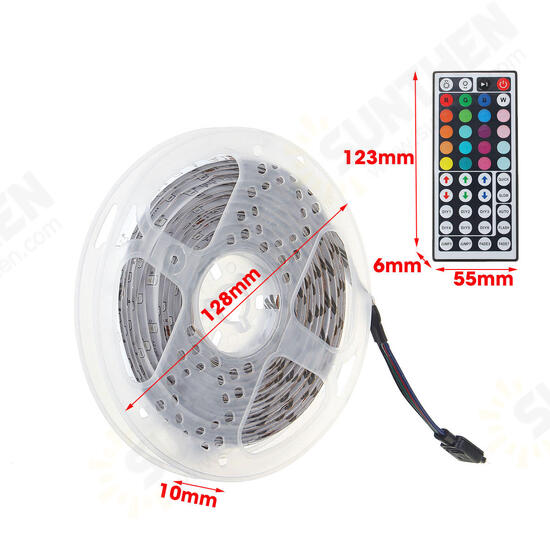 White Reel IP65 DC12V 24W 5M 2835 RGB 300 LED Strip Light + 44Keys IR Remote Control + Controller