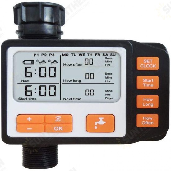 Smart display remaining power to ensure you are aware of the available power. Manual mode allow instant watering use without interrupting your set irrigation program. Rain Delay mode will suspend your program for an interval to avoid overwatering and unnecessary waste and save much water in rain days.Child Lock mode keep sprinkler timer safe from kids and pets activities. Accurate timing display in manual mode.