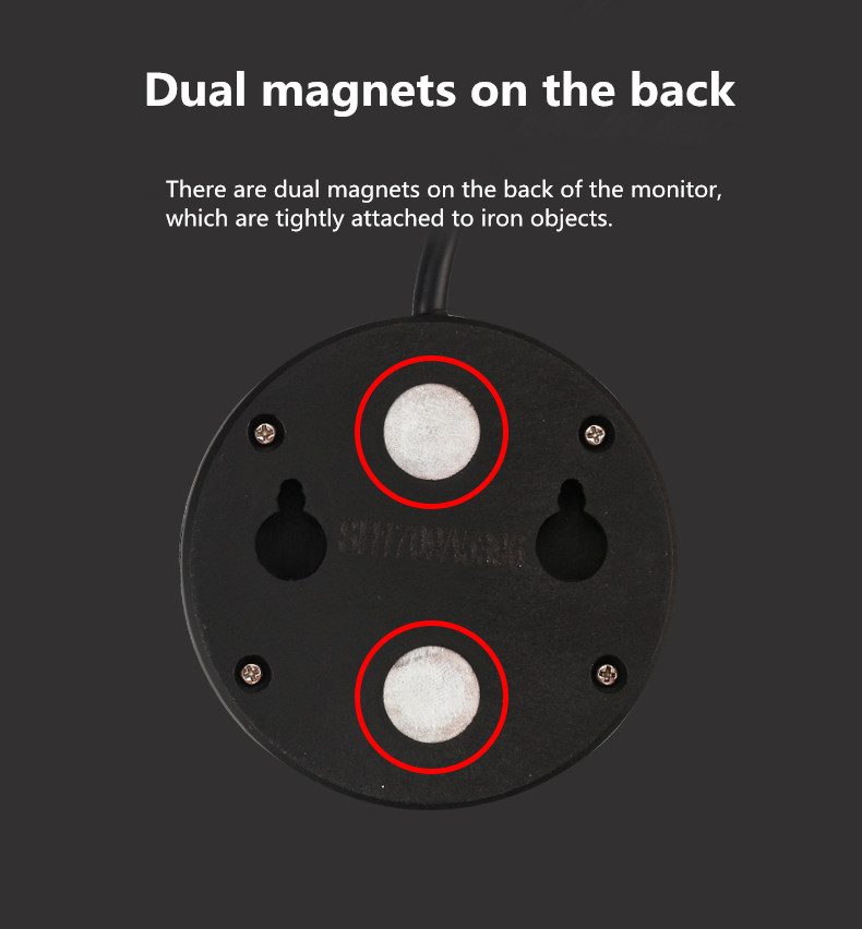 - There are dual magnets on the back of the monitor, which are tightly attached to iron objects.
