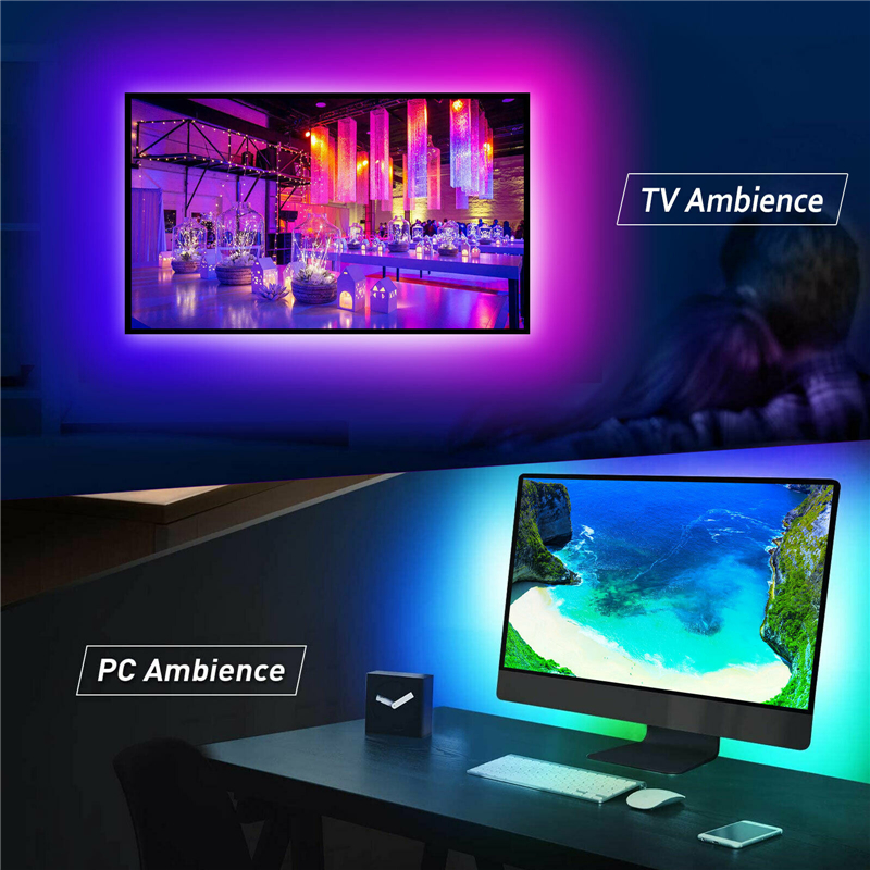 Dream Color USB LED strip light for PC Screen Backlight lighting, play games, watch movies or daily working. adds ambient backlight effects to computer or laptop compliment on-screen video content. An kit dynamically adjusts elements such as color and brightness to create a more immersive multimedia experience. By the way, comfortable bias lighting will reduce eye fatigue between the bright PC and dark room.