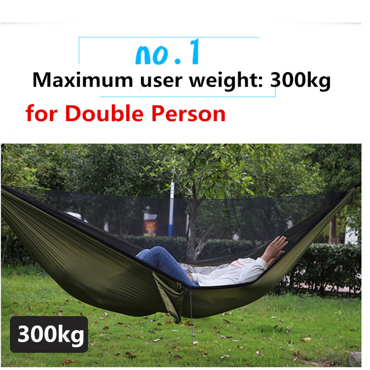1-2 Person Portable Outdoor Camping Hammock with Mosquito Net High Strength Parachute Fabric Hanging Bed Hunting Sleeping Swing