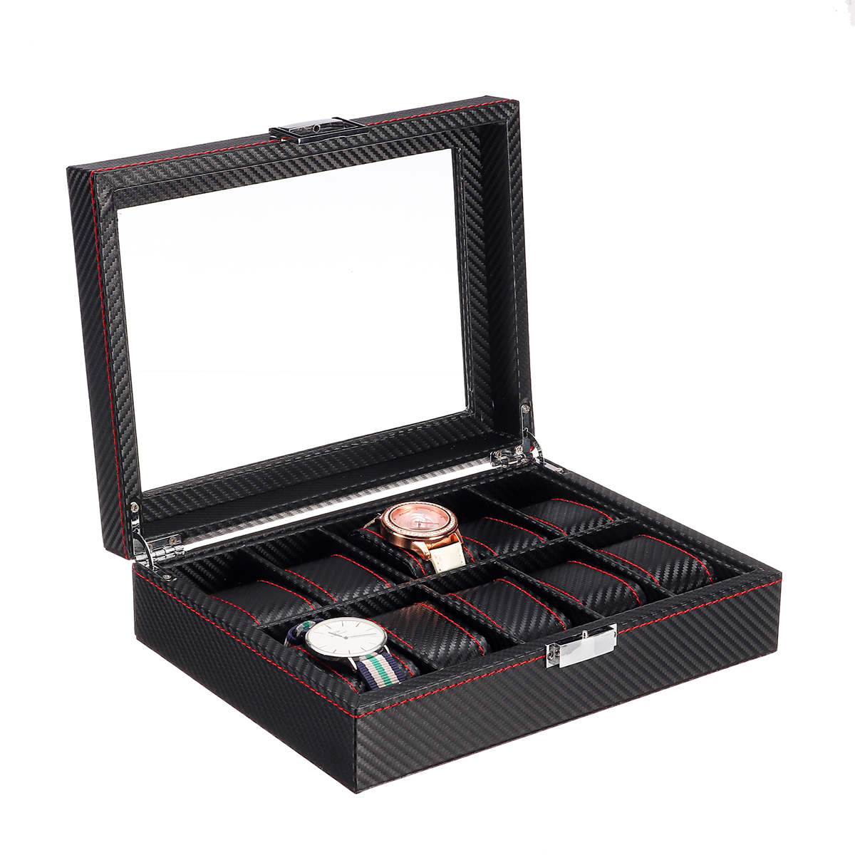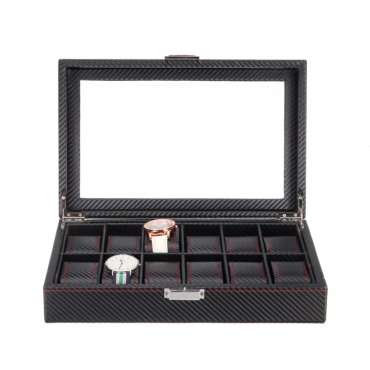 10/12 Slots Carbon Fibre Pattern PU Leather Watch Box Jewellery Display Collection Storage Box