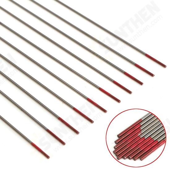 10Pcs WT20 1.0x175mm TIG Welding Tungsten Electrodes Red Tip Rods Set