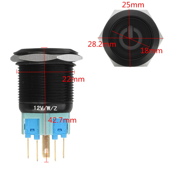 12V 22mm 6 Pin Led Metal Push Button Latching Power Switch