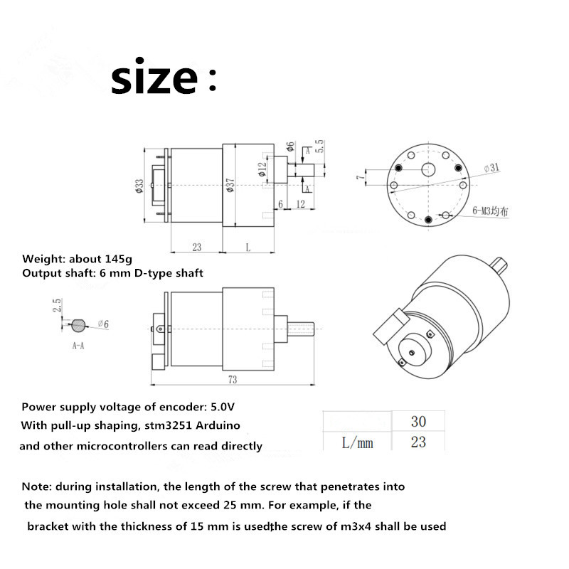 12V 37GB-520 DC Reduction Motor Metal Gear Speed Regulating Motor for Robot RC Car