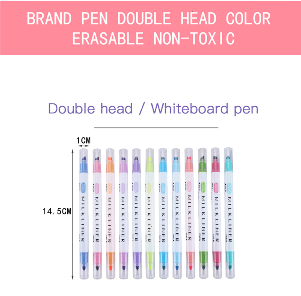 12pcs Highlighter Pen Set Double Head Fluorescent Marker Watercolor Pen Business Office Writing Drawing Supplies