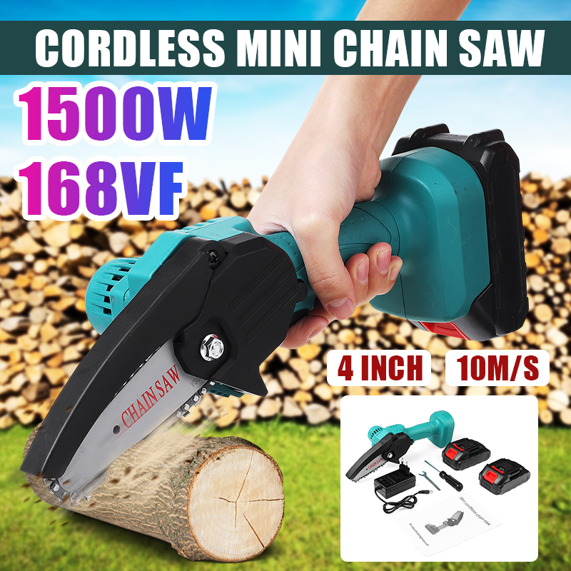 1500W 24V 4Inch Rechargable Mini Chain Saws One-hand Cordless Electric Pruning Chain Saw Protable Mini Chainsaw W/ 1/2pcs Battery EU Plug