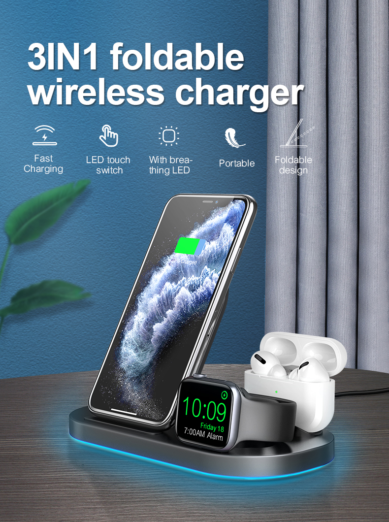 1.3 IN 1 WIRELESS CHARGER: Wireless charger stand for fast charging your Qi-Enabled Phones, Apple Watch,AirPods wirelessly at the same time,no more messy cables,never overheats your devices, brings you endless enjoyment and convenient!
