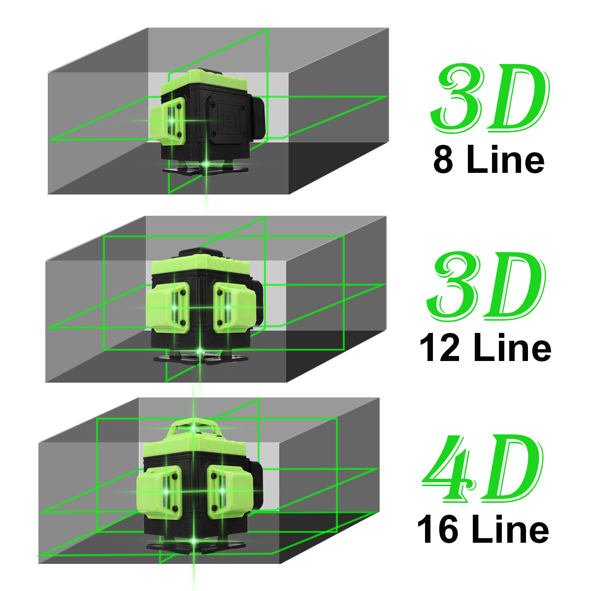 16/12/8 Line 4D 360° Horizontal Vertical Cross Green Light Laser Level Self-Leveling Measure APP Control