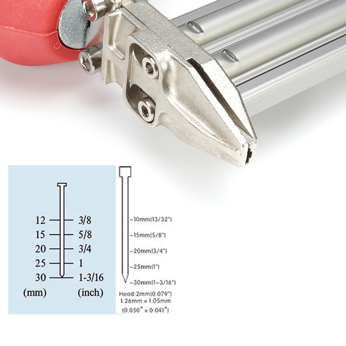 1.Installing nail: Please unplug the nailer hefore install nail , then open the cover of nailer groove , put correct size nail into the bullet ciip . Make sure nail is at the bottom of nailer's groove and close the cover carefully to fix the nailer's groove . The nailer only for wooden material, when using the tool, please flatten against the wooden and keep 90 degree right. Do not use without nail.