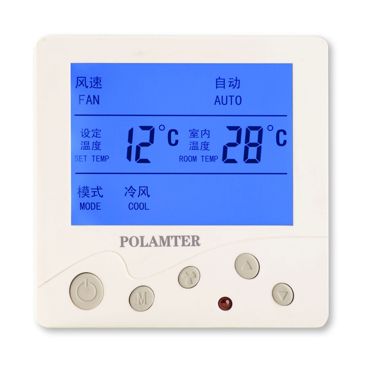 Suitable for temperature control of fan coils, electric valves, electric dampers, electric vents, and heating equipment (see specific models). Large-screen liquid crystal display, NTC (negative temperature system) temperature sensor inside the thermostat, detection of indoor temperature, and real-time comparison with the user's set temperature, automatic adjustment of cold and warm air intake and open or close the pipeline Electric valve, to maintain the indoor constant temperature.