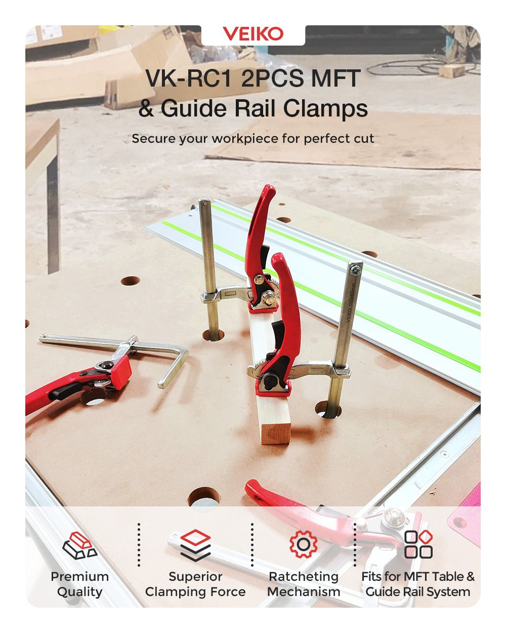VEIKO 2PCS Alloy Steel Upgrade Quick Ratchet Track Saw Guide Rail Clamp MFT Clamp for MFT Table and Guide Rail System Woodworking Clamp