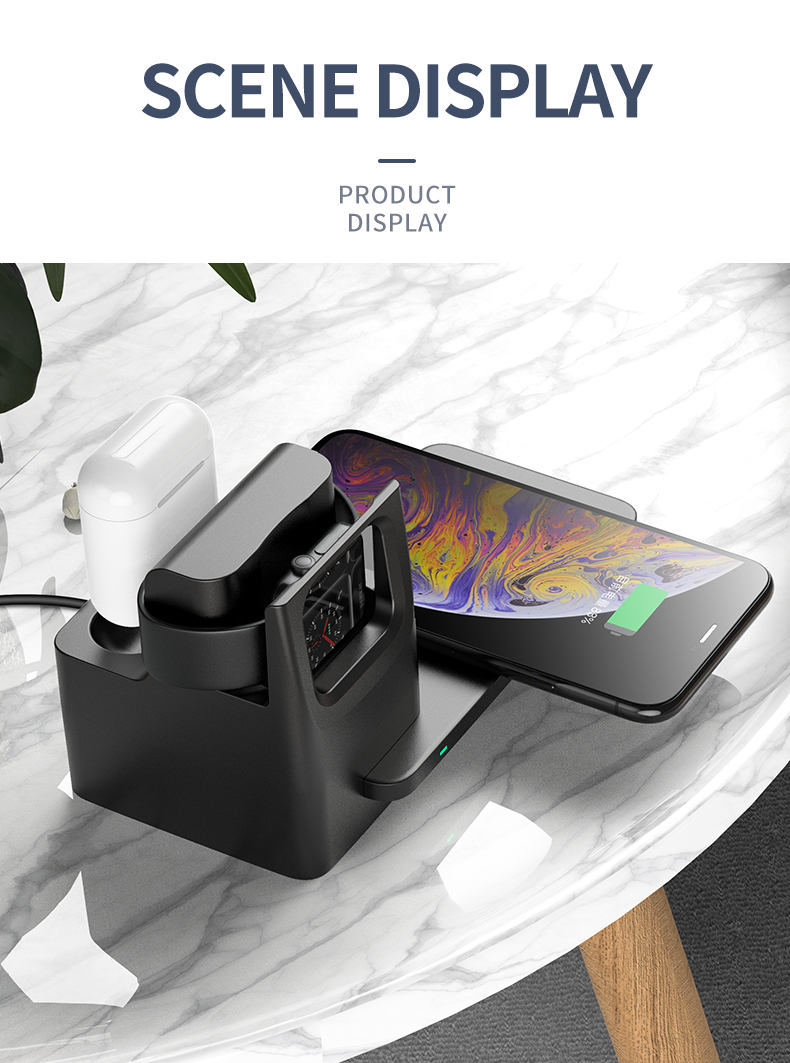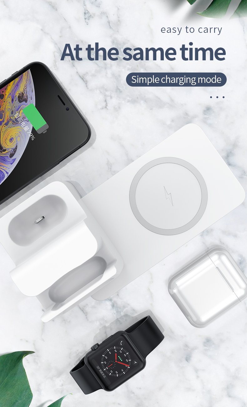 Charge your Phone/Watch/pods at the same time, Special Hidden line design provides you a tidy charging stand.