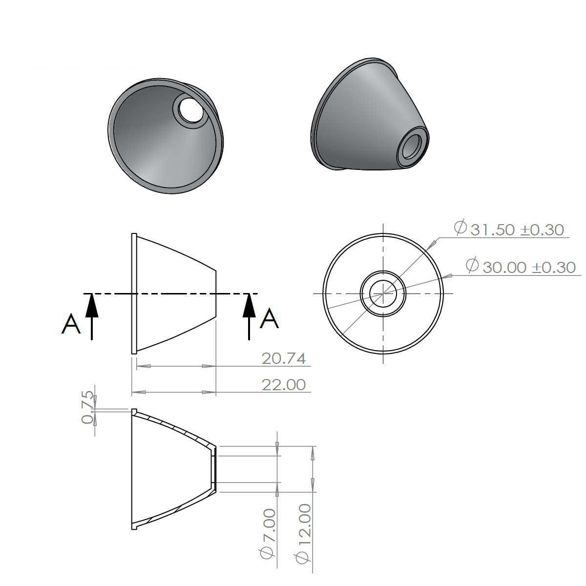 31.5x22mm LED Flashlight Reflector Cup High Power For XM-L T6 / XM-L2 / SST40 Orange Peel Reflector Highlight Reflector