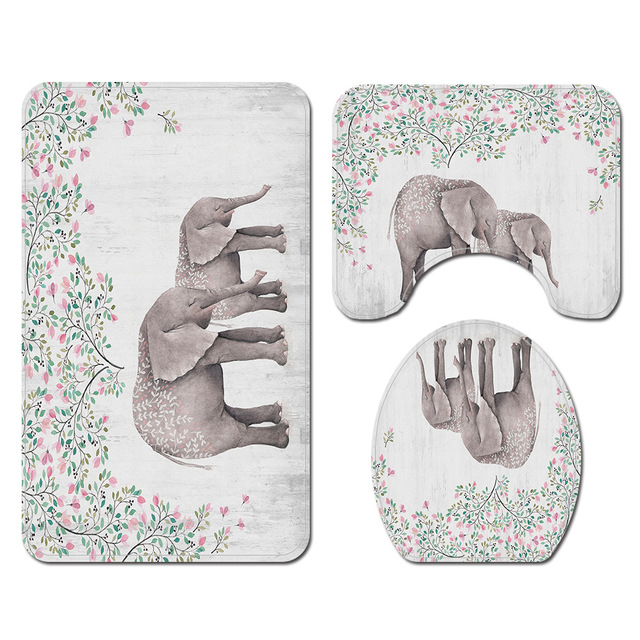 3pcs Anti-slip Bath Rug Elephant Mat Bathroom Mat Set Bathroom
