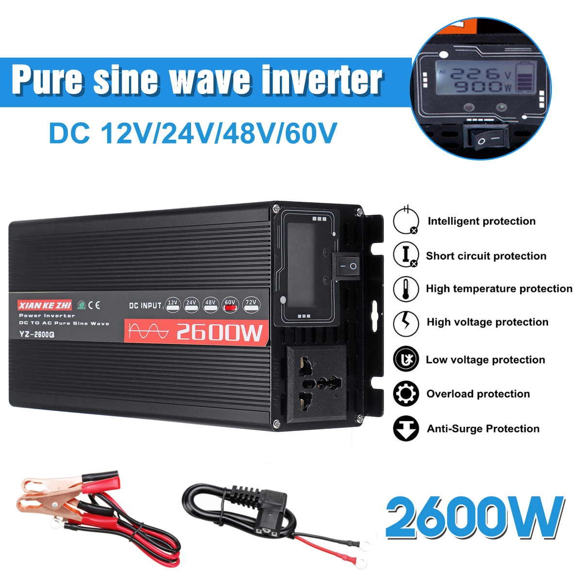 4200W/2600W LCD Display Pure Sine Wave Inverter 12/24/48/60V TO 220V Hpusehold Car USB High Power Inverter W/ 6 Protections Converter