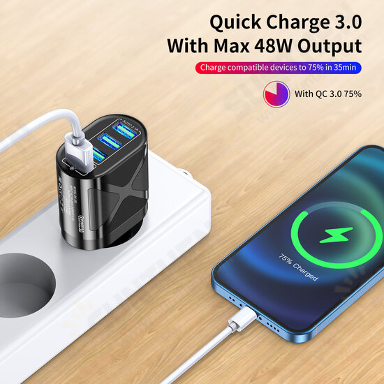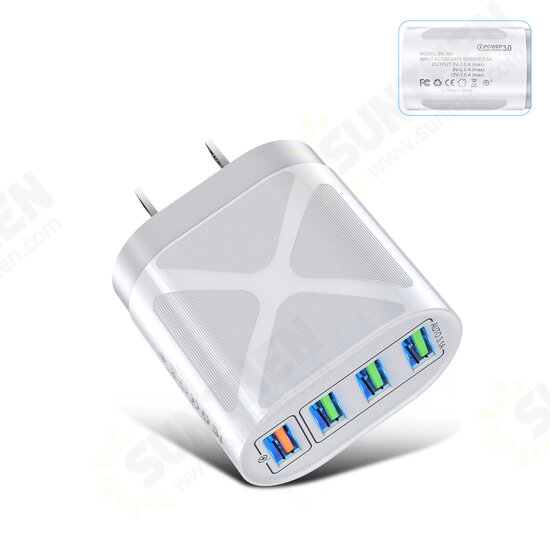 48W 4-Port USB Charger QC3.0 FCP SCP Fast Charging Wall Charger Adapter EU/US/UK Plug for iPhone 12 Pro Max for Samsung Huawei OnePlus