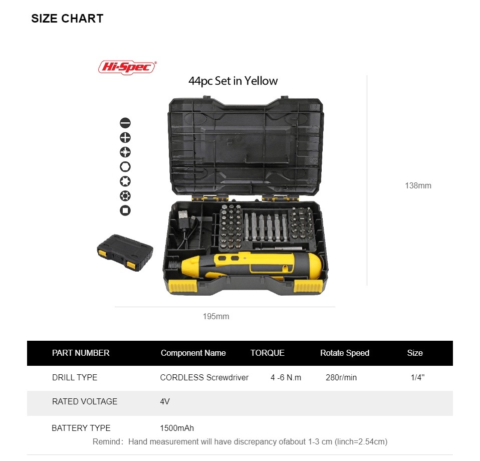 1x Cordless Screwdriver(Blue/Yellow/Red Optional)