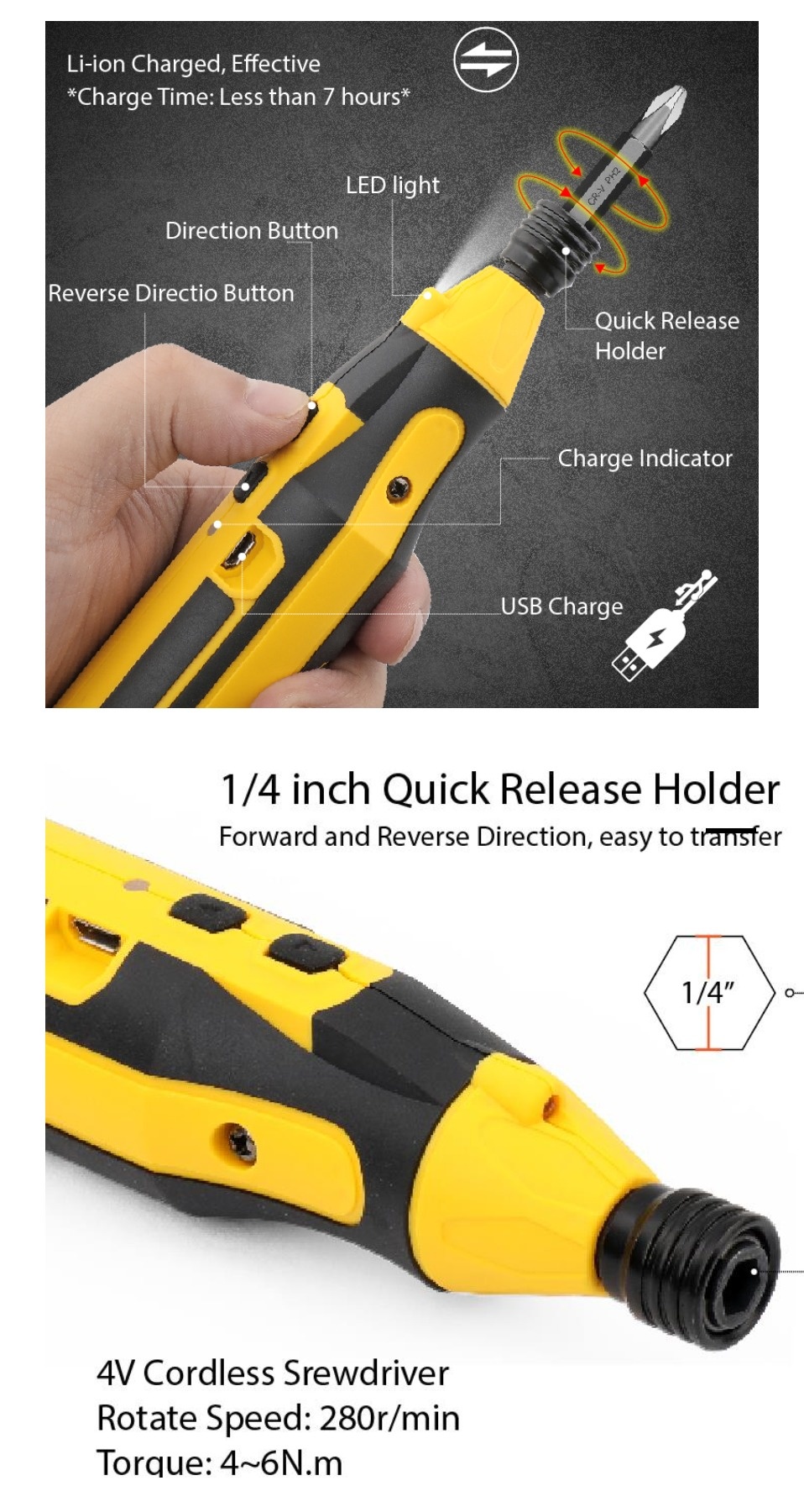 4V Mini Electric Screwdriver Set Lithium Battery USB Rechargeable Screwdriver Bit Set 1/4 Torque Power Cordless Drill with Accessories