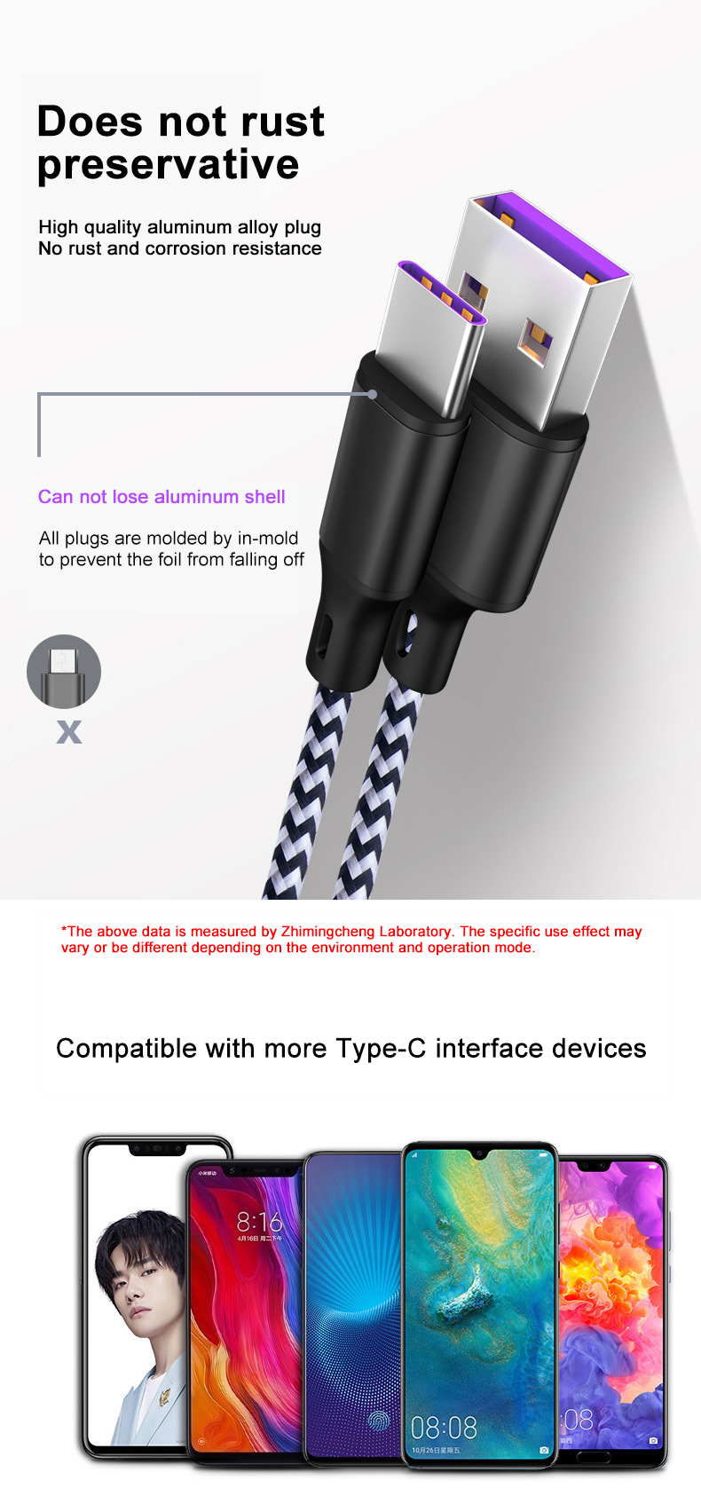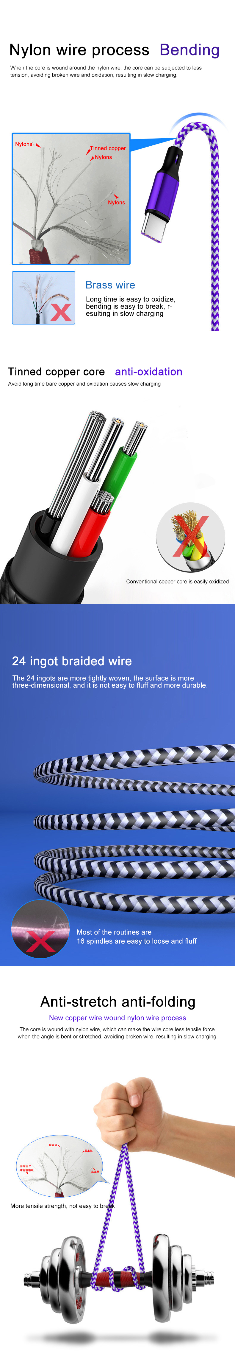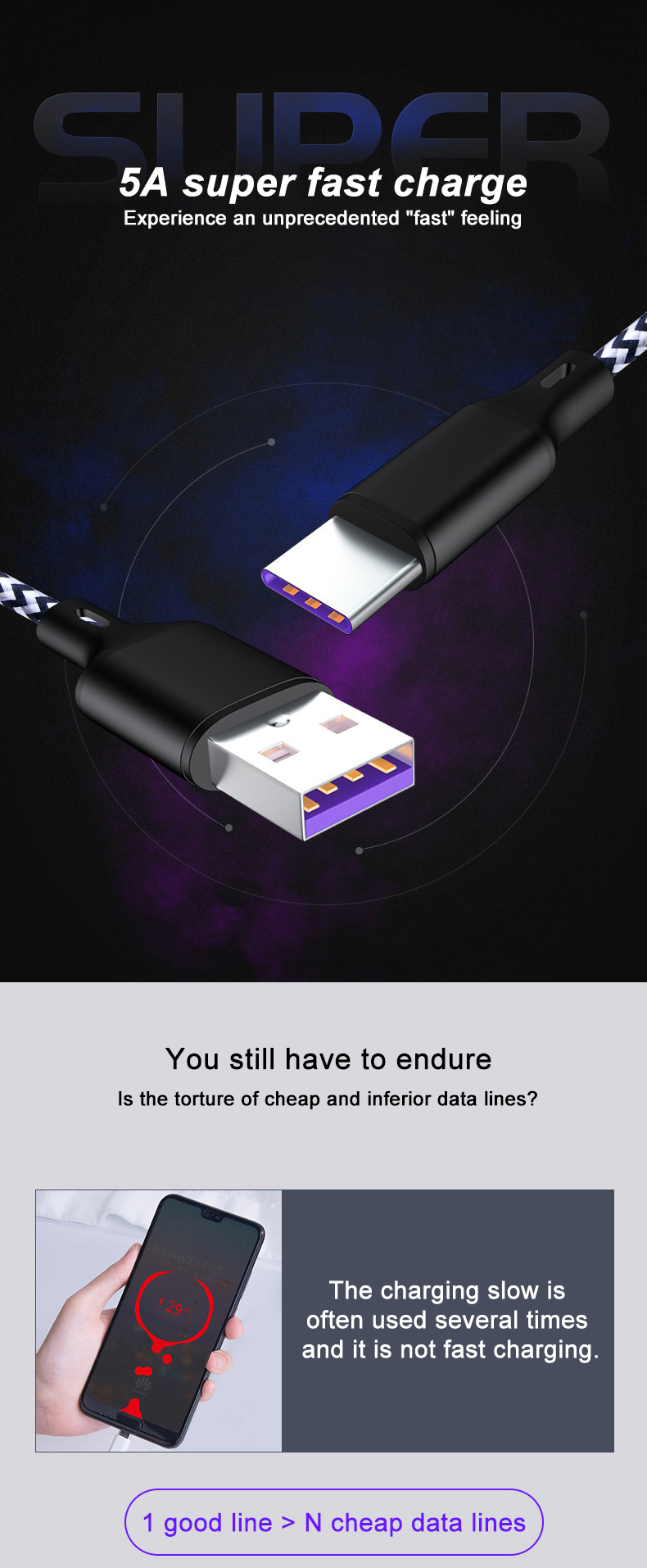 5A Type C Nylon Braided Fasting Charging Data Cable For Mi8 Mi9 HUAWEI P20 P30 S9 Note S10 S10+