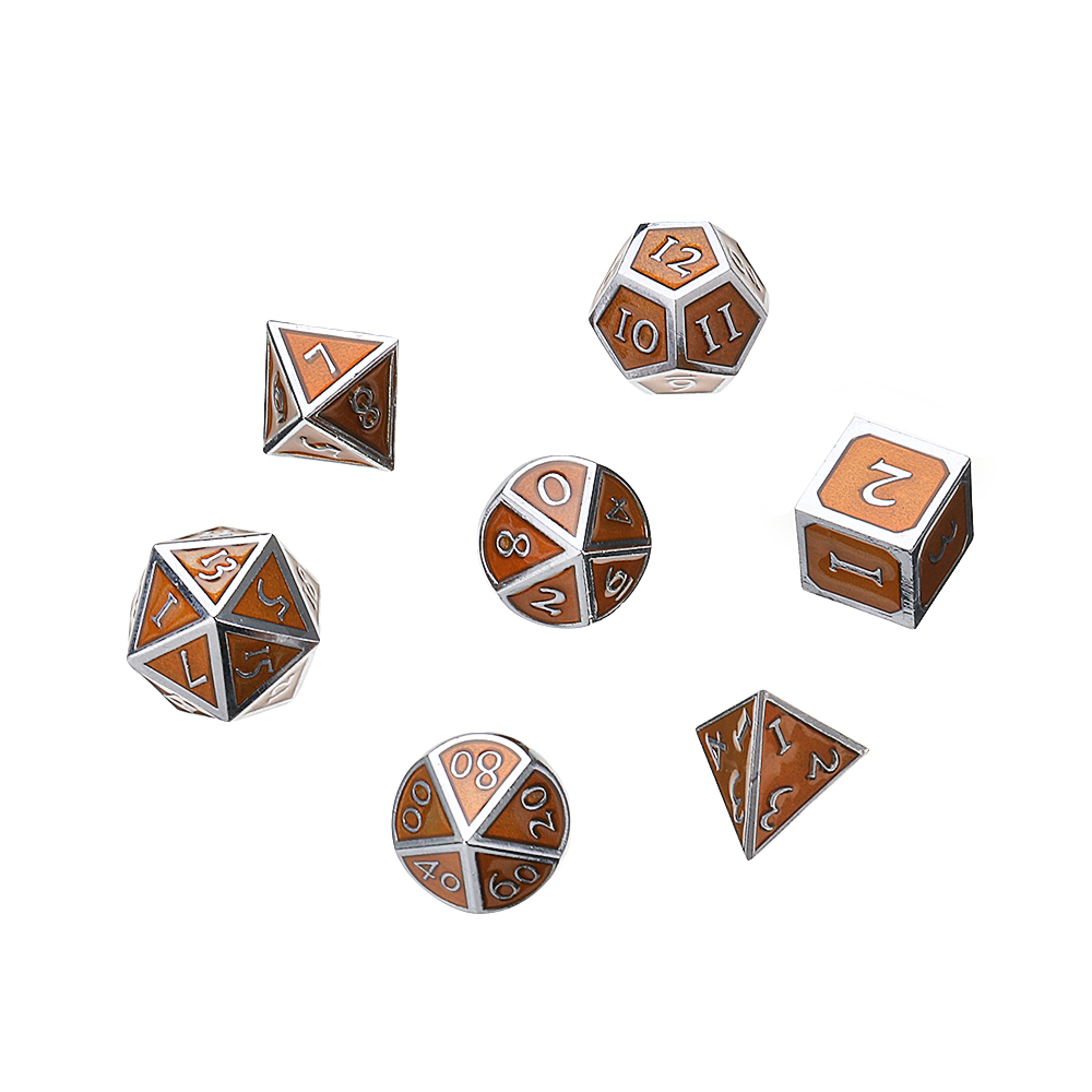 7Pcs Antique Metal Polyhedral Dices With Bag Copper Color For Dungeons Dragons Game