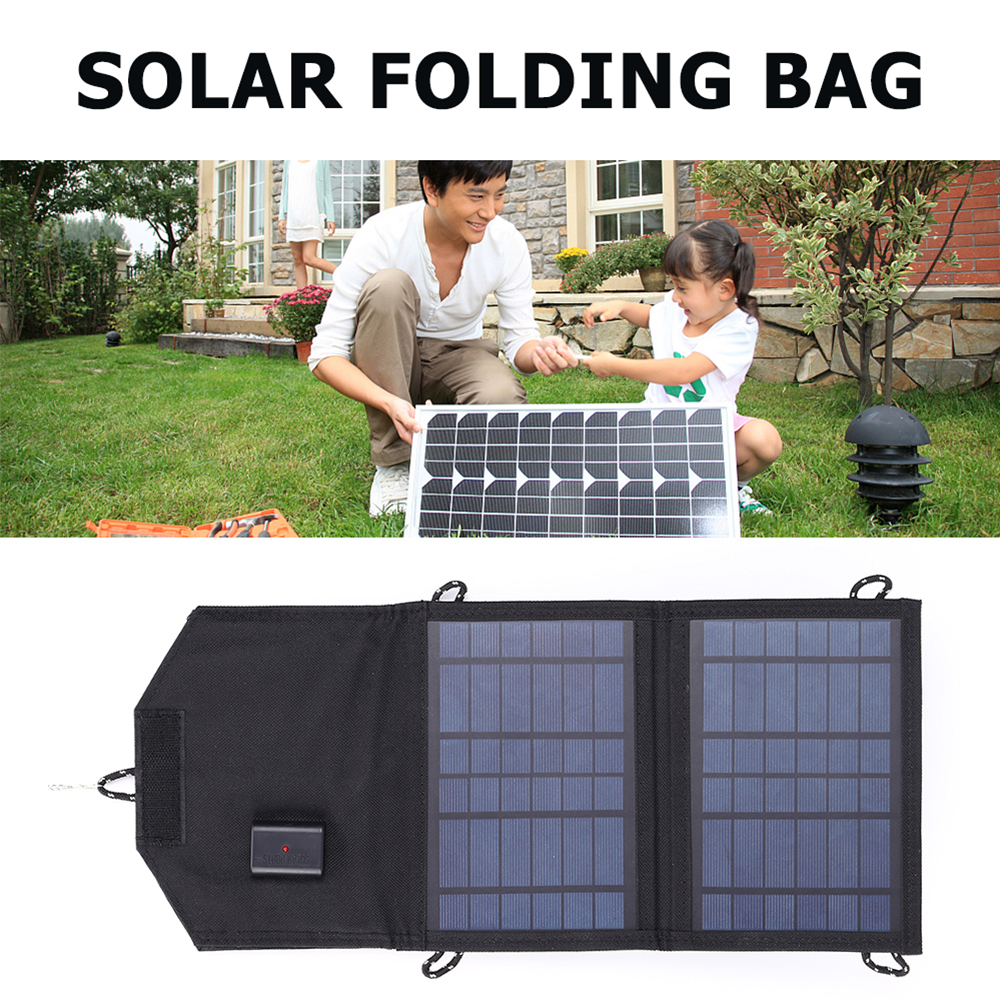 7W 5V Foldable Solar Panel Portable Outdoor USB Port Battery Charger Waterproof Solar Bag for Phone Charging Traveling Camping
