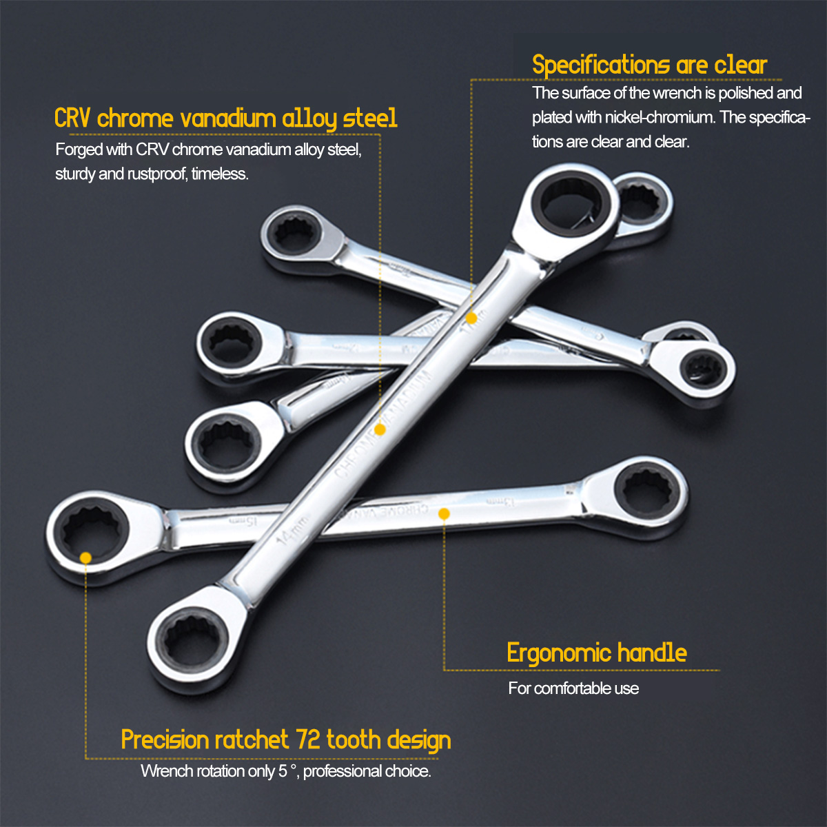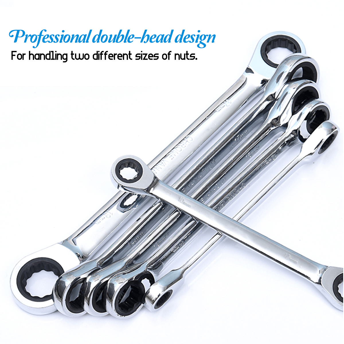8-19mm Steel Metric Fixed Head Ratchet Spanner Wrench Double End Ring Tool