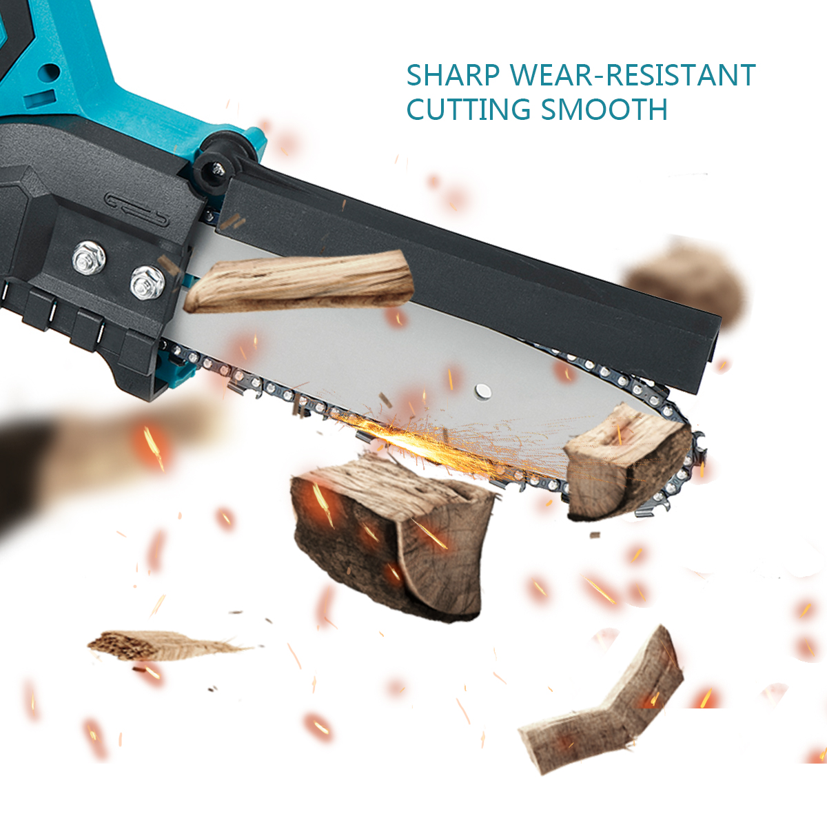 ● Wireless binding: easy outdoor cutting ● Strong motor: pure copper motor, powerful power,long service life ● Handle design: comfortable grip, in line with human body design ● Lithium battery power: say goodbye to the trouble of finding power supply ● High quality guide chain: sharp wear-resistant, deep quenching more wear-resistant, cutting smooth ● Step less speed change switch: humanized switch design, adjust cutting speed according to pressure ● Efficient heat dissipation: the design of multiple exhaust outlets on the fuselage can effectively prevent burning ● Safety protection baffle: comprehensive protection, rest assured cutting to prevent spark sawdust and other spatter ● Lightweight fuselage: light and portable, one handed operation,comfortable to hold, not tired to hold for a long time ● Four intelligent protection functions: over-current protection, over-voltage protection, overheating protection, charging and discharging protection | |