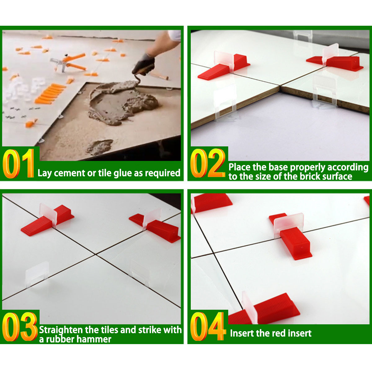 900PCS Tile Leveling Spacer System Tool Kit Wedge + Clips Locator Without Plier