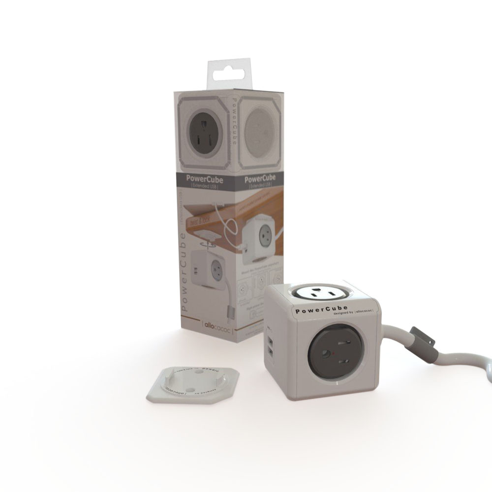 Allocacoc 16A 230V 4 Outlets Dual USB Charging Ports Creative Cube Shape Design Power Strip Power Socket with 1.5m Cable