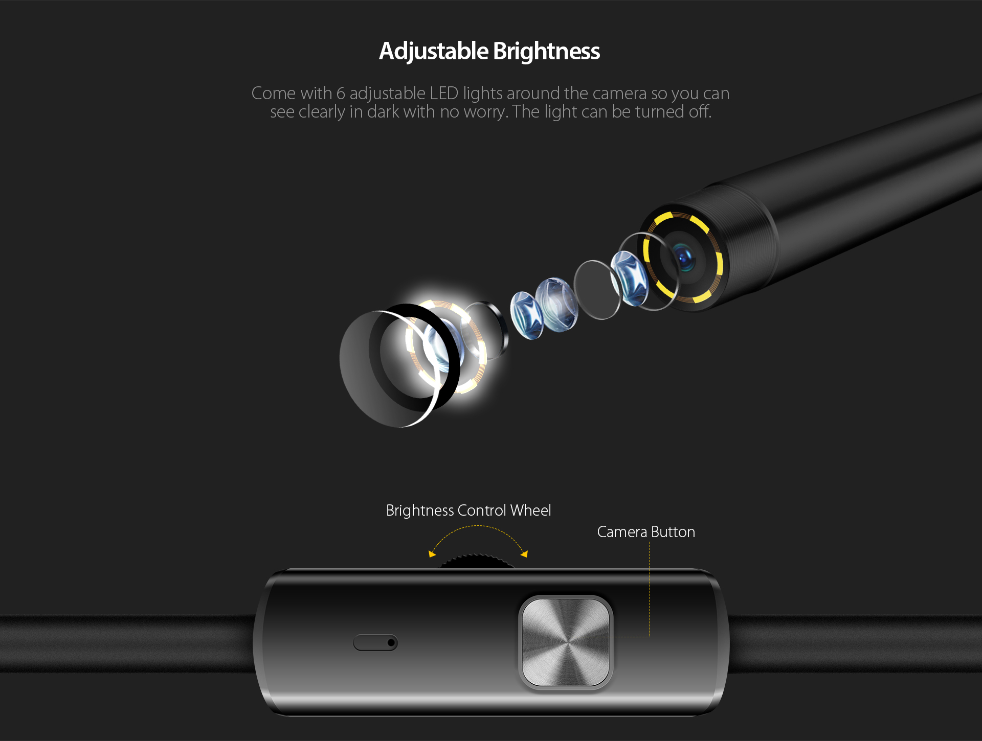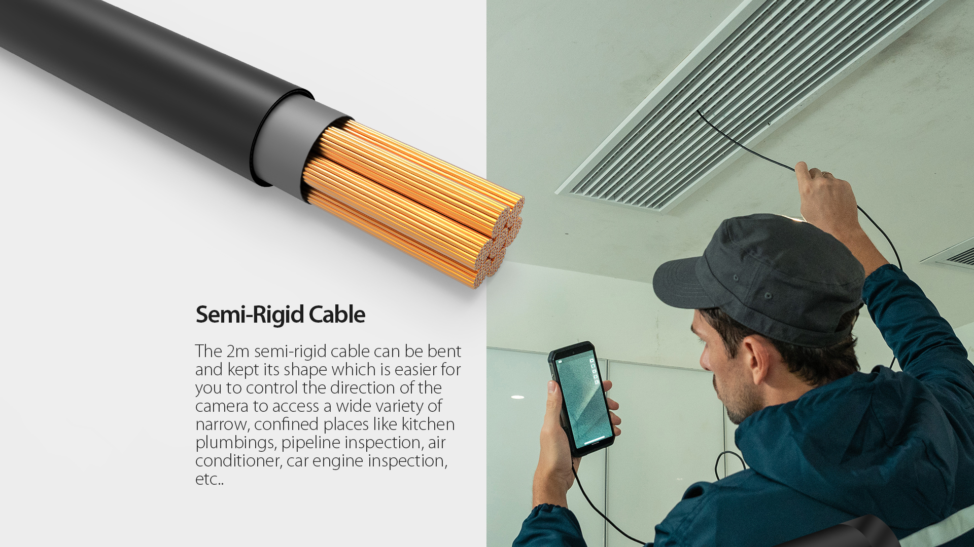 4. The 2m semi-rigid cable can be bent and kept its shape which is easier for you to control the direction of the camera to access a wide variety of narrow.