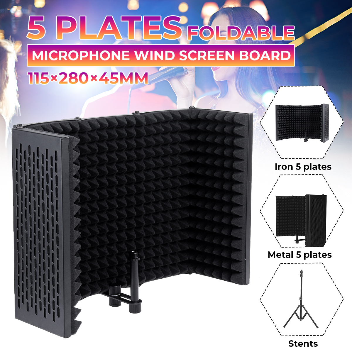 5 Panel Foldable Studio Microphone Isolation Shield Recording Sound Absorber Foam Panel Support Bracket