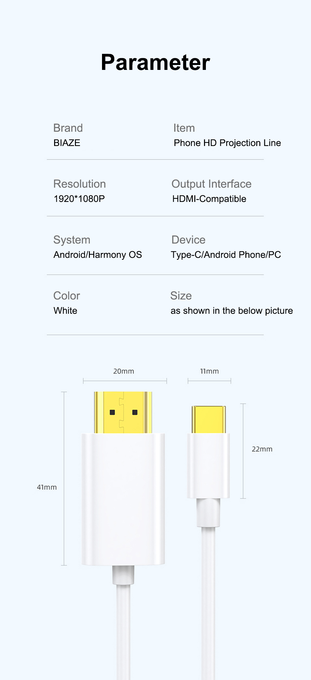 - Suitable for connecting Type-C / Android Phone / Tablet to TV / Projector / Video Grabber with HDMI-Compatible port