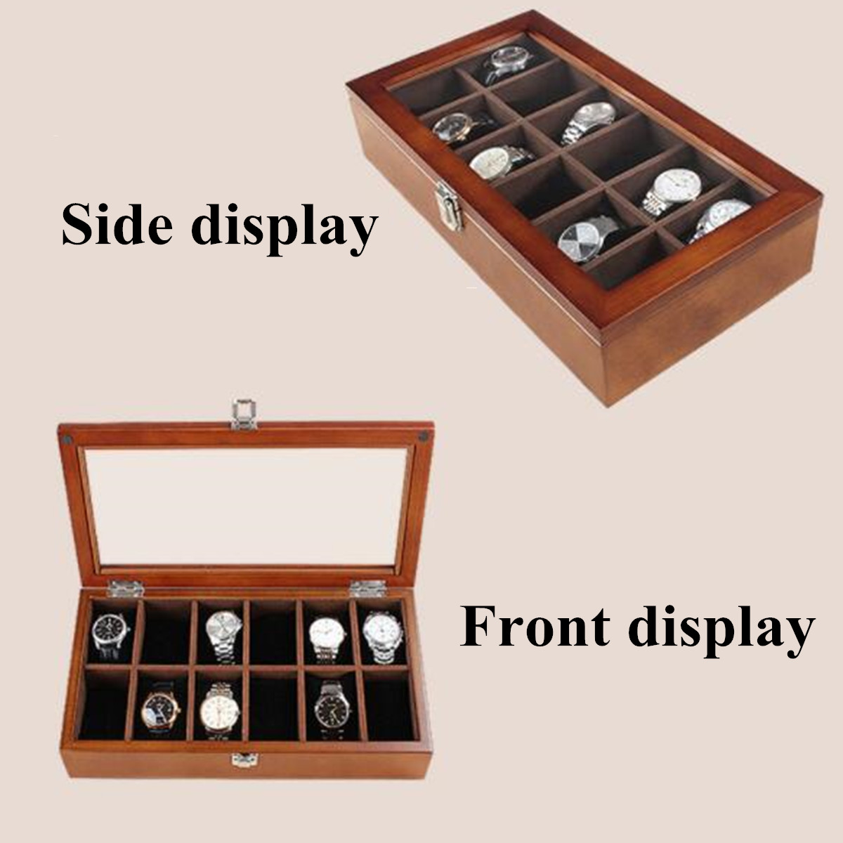 Designed with a clear transparent qualify glass top lid to enable easy viewing of the watches inside and keep the watches dust free.