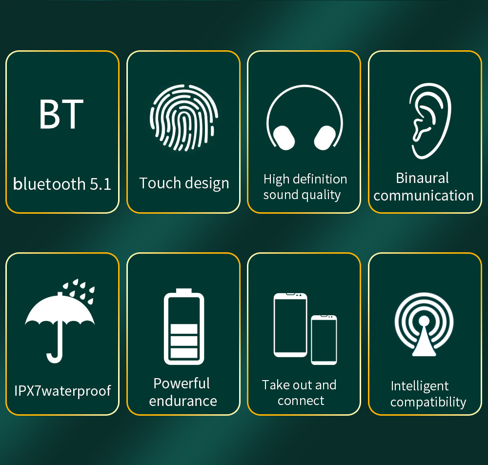 AQ009 TWS bluetooth 5.1 Earphones LED Display HiFi 9D Stereo Waterproof Sports Headset With Microphone