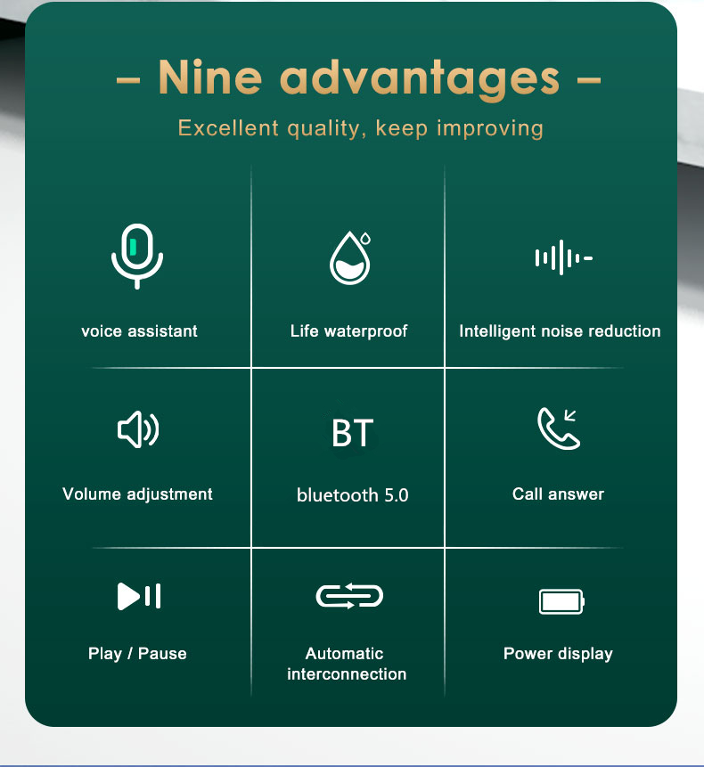 P69 bluetooth 5.0 TWS Wireless Waterproof Headphones Mini Headset Touch Control Earphone Stereo Bass Earbuds with LED Display