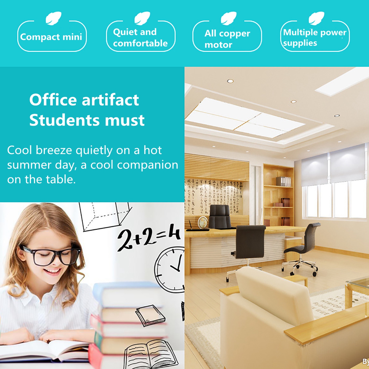 1.The compact and lightweight personal fan, providing cooling air circulation in any desired direction. Very suitable for home, car, office, desktop, camping or travel.-