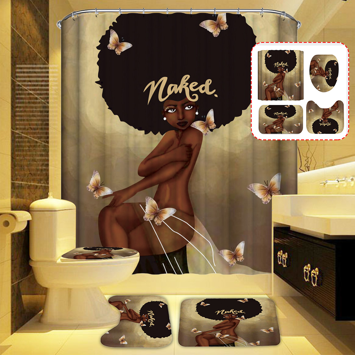Afro Africa Girl Queen Princess Bath Curtains with Rugs Toilet Seat Cover Set Shower Curtain Afro Africa Girl Queen Princess Bath Curtains with Rugs Toilet Seat Cover