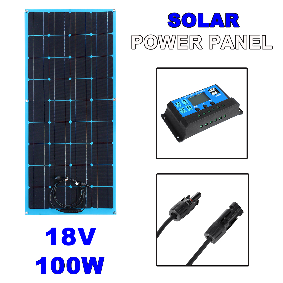 100W 18V Solar Panel Monocrystalline Semi-flexible Battery Charger Outdoor Camping Travel