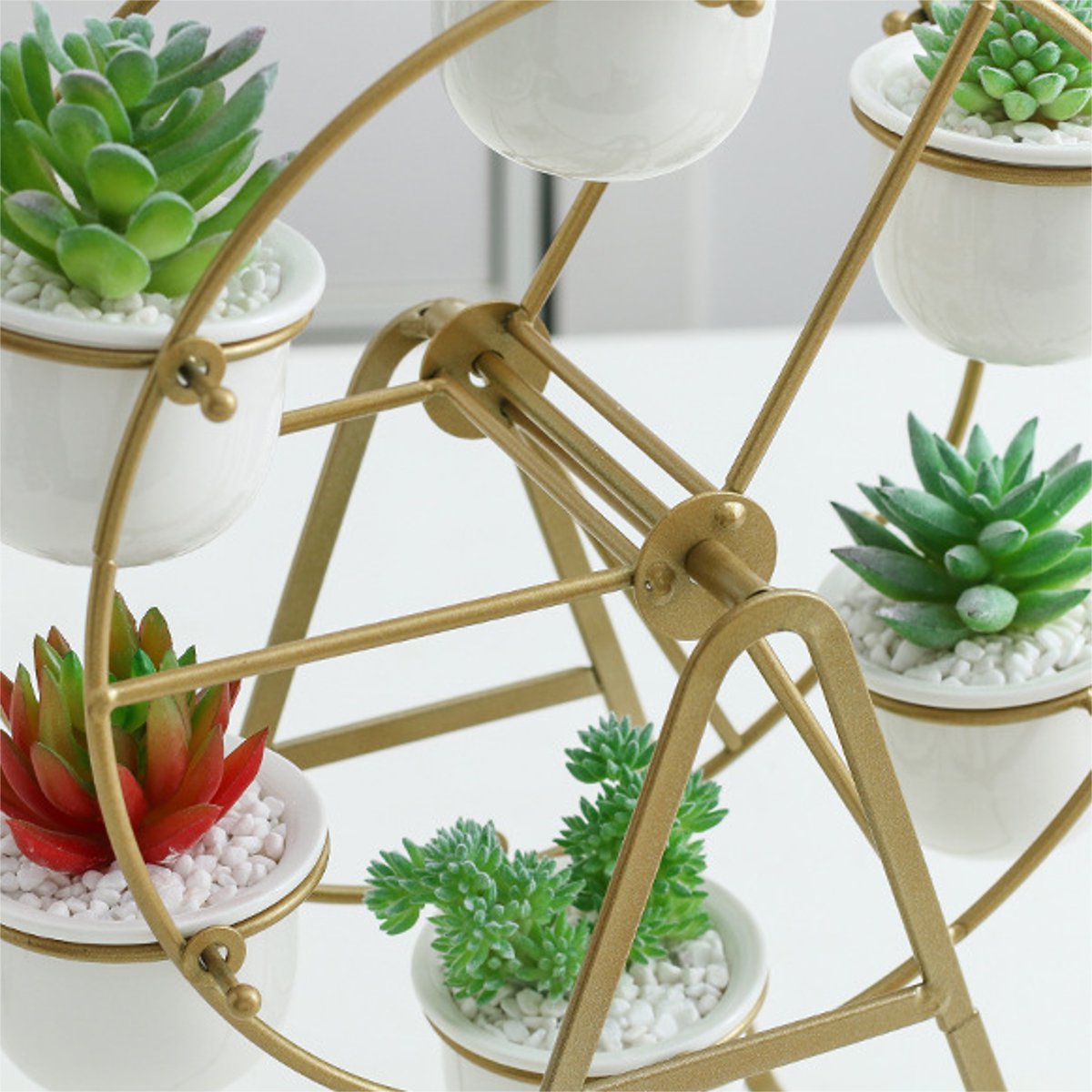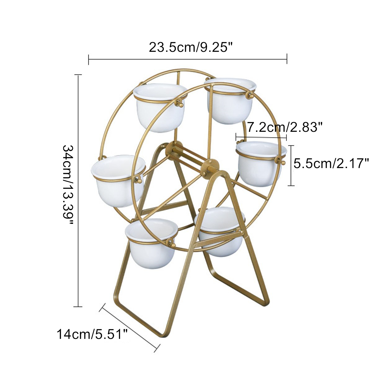 ● Ferris wheel design, set stylishly in iron holder, bring your flowers a beautifully designed display with 6 ceramic pot.