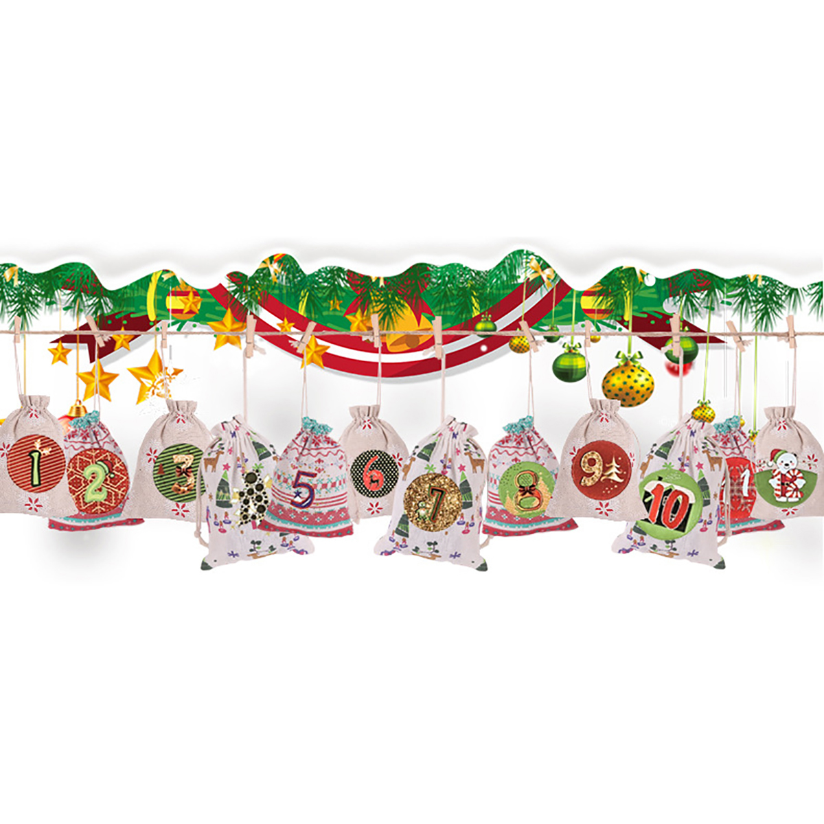 Christmas Cotton Linen Hanging Advent Calendars Countdown Drawstring Gift Bags Candy Biscuit Pouches Present Gift Wrap