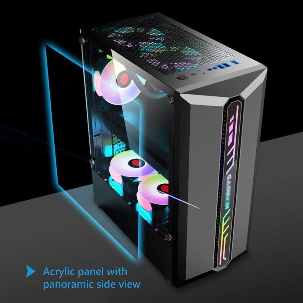 Computer Case Mid-Tower ATX/M-ATX/ITX Acrylic Side Panel RGB Gaming Computer PC Case USB 3.0/USB 2.0/HDD/SSD for Desktop PC Computer