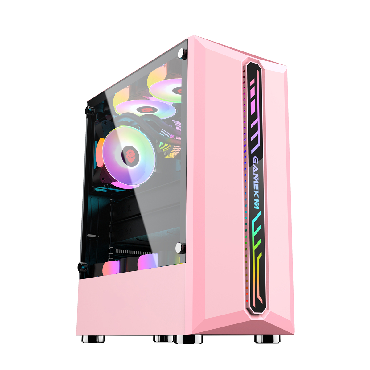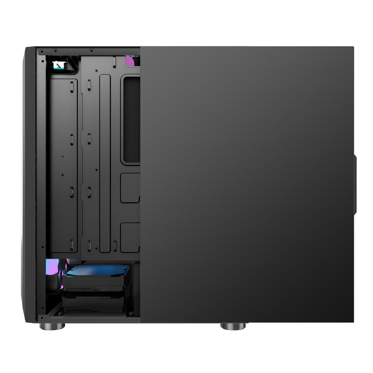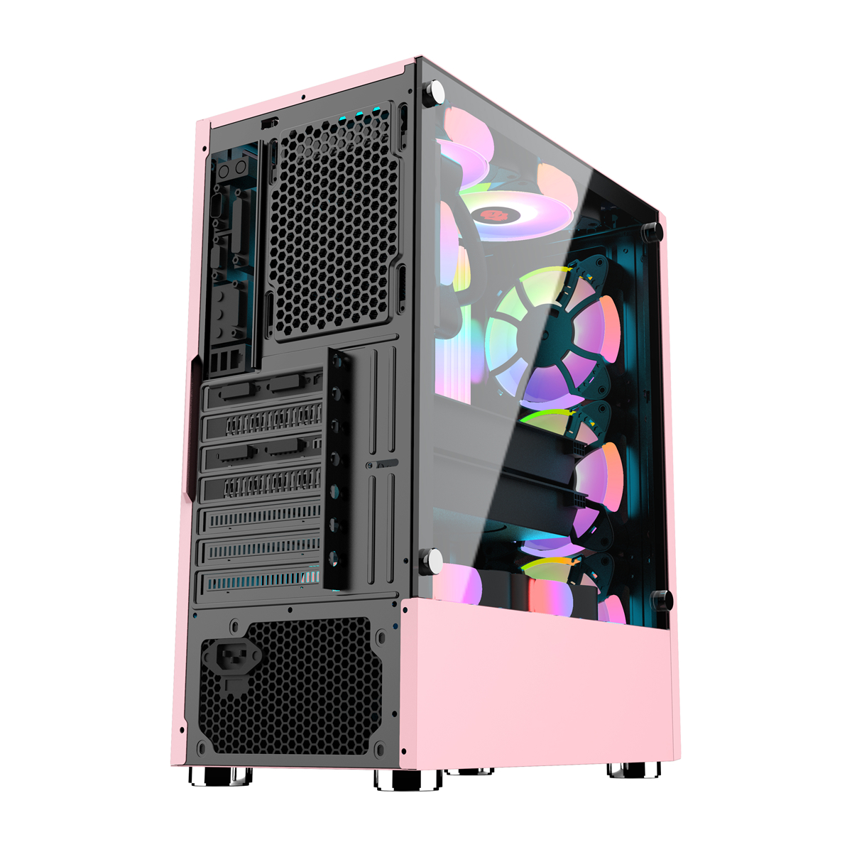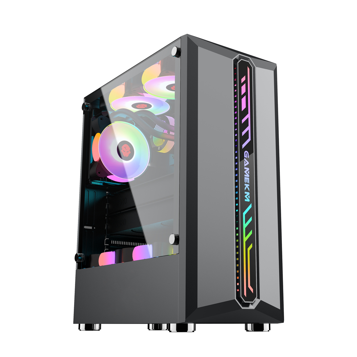 ● The full-through gaming PC case on the left allows you to see the RGB components at a glance.Change motherboard size to support ATX/M-ATX and ITX