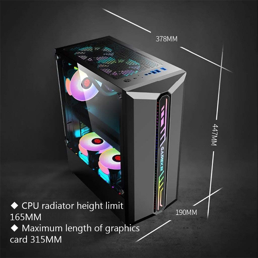 ● Clean and beautiful computer case, size: 378*190*447mm, all components have enough space to make it durable, suitable for your first generation PC, theater PC and gaming PC