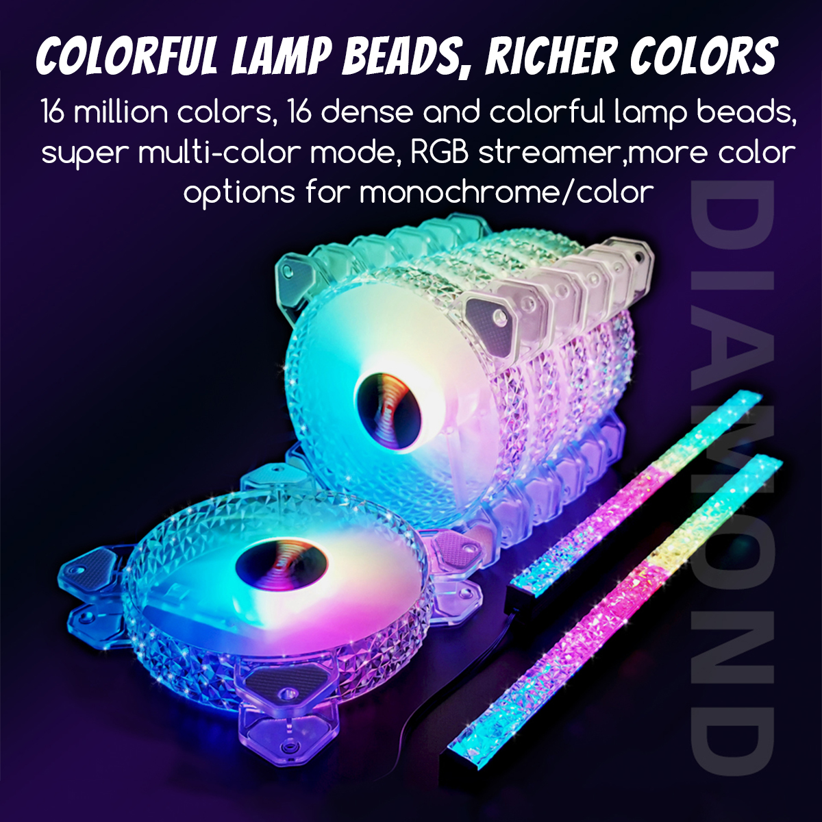 3/6 Pcs 120mm RGB Fans Crystal Diamond PC Case Cooler Computer CPU Cooling Fan